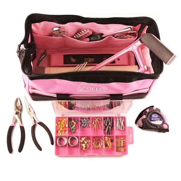 This Apollo 201 piece household tool kit is perfect for most household small repair. The tools are heat treated and chrome plated to resist corrosion and come in a very convenient tool bag. Contains: 13 Ounce Wooden Handled Hammer, 12 ft. Measuring Tape, 6″ Long Nose Pliers, 6″ Slip Joint Pliers, 6″ Adjustable Wrench, 4 Precision Screwdrivers, Bit Driver, Ten 1″ CRV Bits, 16 Hex Keys – SAE & Metric, 9″ Plastic Level, 6″ Hacksaw, Three Extra Saw Blades, 160 Piece Picture Hanging Assortment, Polyester Bag.