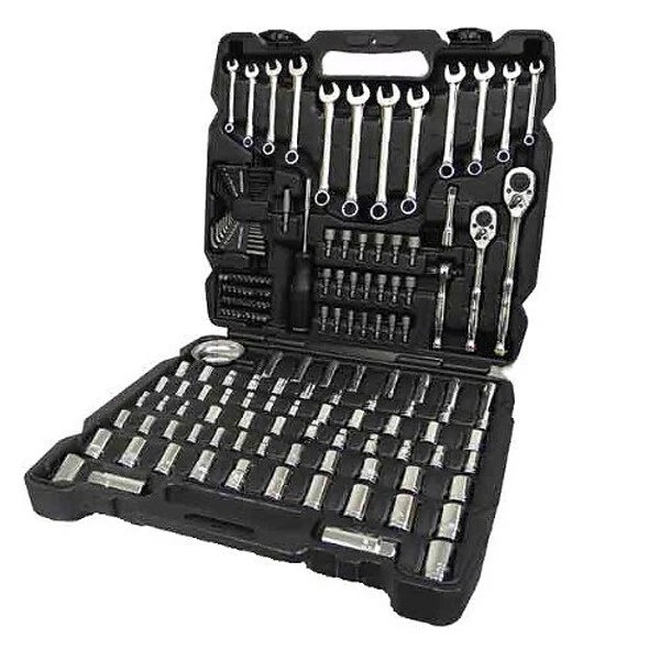 Mechanic’s tool set has 171 pieces and features magnetic bit driver with full range of fastener bits, and flat panel, full polish SAE and metric combination wrenches.