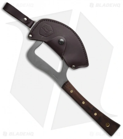 The Condor Thorax Hatchet is a capable tool featuring a durable 1075 carbon steel head with a blasted satin finish. The wood handle scales are made from a long-lasting, sturdy walnut for optimum comfort. This Hatchet includes a hand crafted welted leather sheath.