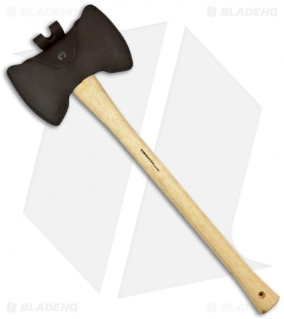 The Double Bit Michigan Axe is forged from 1045 high carbon steel and sports the Condor Classic finish. The head measures 7″ across with 4″ cutting edges. The hardwood handle is made from American Hickory for maximum comfort and durability. This Axe includes a heavy-duty protective leather sheath with swiveling belt loop, so the axe can swing out of the way while you’re moving about.