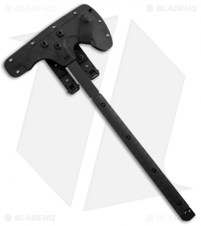 The BFT01-G black Tactical Tomahawk has been designed for a number of uses. It is purpose built for impact/MOE/CQB use. Built from a 5/16″ thick slab of D2 steel, the BFT01 has a 3.5″ cutting edge and a thick tanto point spike. This axe includes a heavy duty nylon carry pouch and Kydex sheath with multiple mount options.