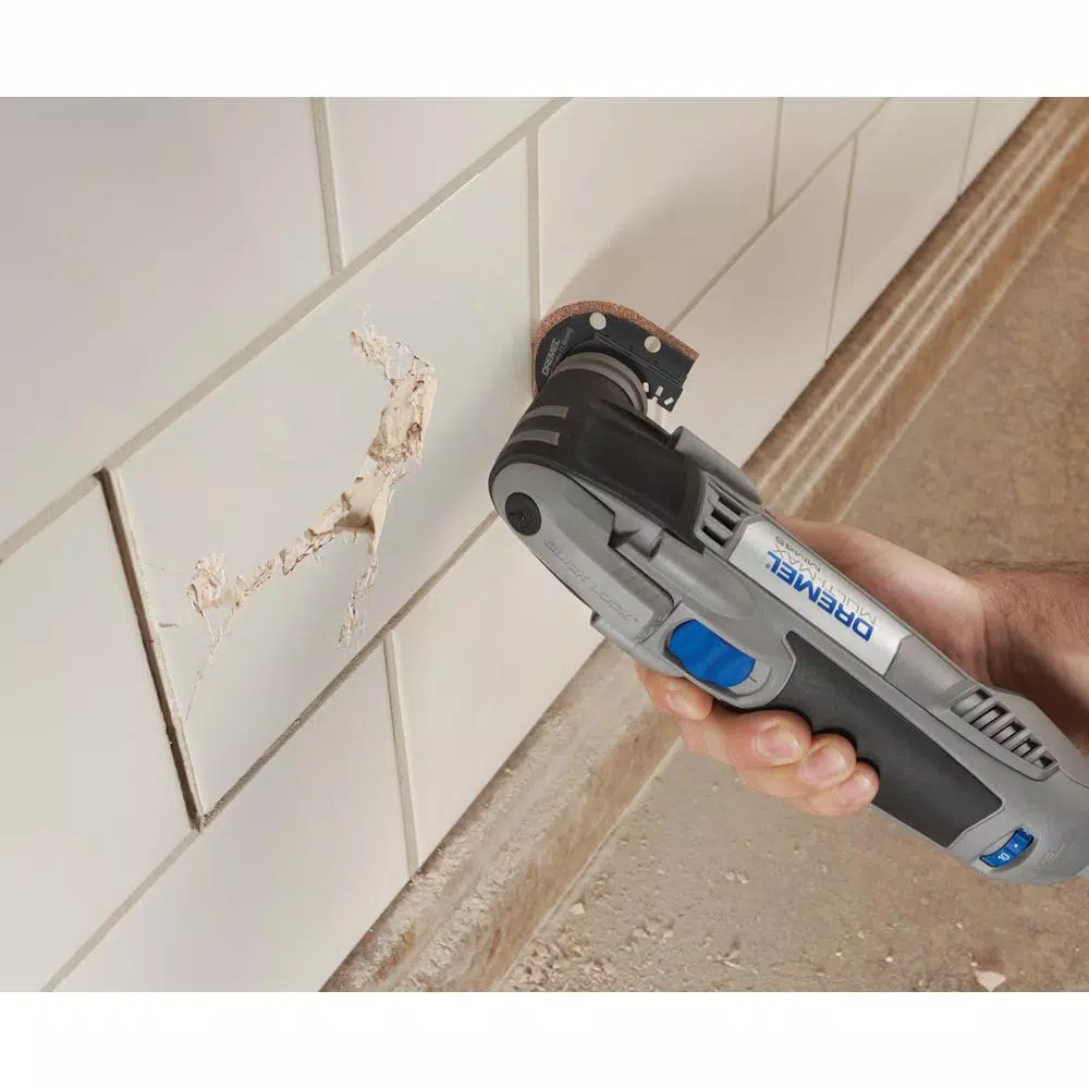 Dremel universal oscillating accessories are the first truly universal oscillating accessories available that require no adapter. The unique dual interface fits all competitive oscillating tools, including those with a quick change feature. The MM501U grout blade is great for removing grout in 1/16 in. grout lines for both wall and floor tiles. The blade is designed to remove the grout up to the surface of a wall or corner; simply orient the blade on your Multi-Max oscillating tool, for extended reach.