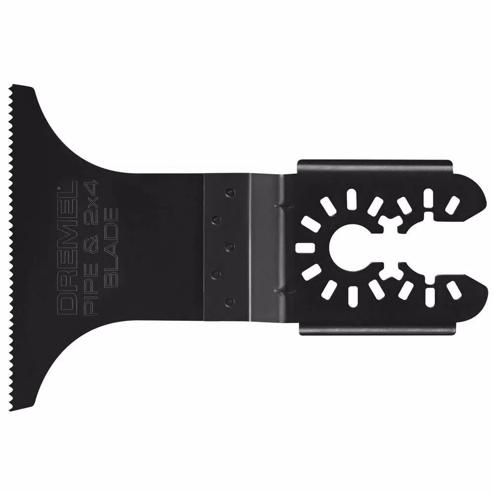 The Dremel MM494U pipe and 2X4 blade is made for cutting pipe and thick materials such as 2X4 studs. With an extra wide cutting edge, the MM494U adds control and convenience because users can now easily cut PVC, conduit and copper pipe without the blade slipping off of the work-piece. Cuts through a 2X4 can now be done in 1 pass as well. The blade’s Bi-Metal construction optimizes the MM494U for metal cutting, so you’ll experience no more destroyed teeth if you hit a nail while cutting. The Dual Interface allows its use with the most common oscillating tools in the market without the need of an adapter.
