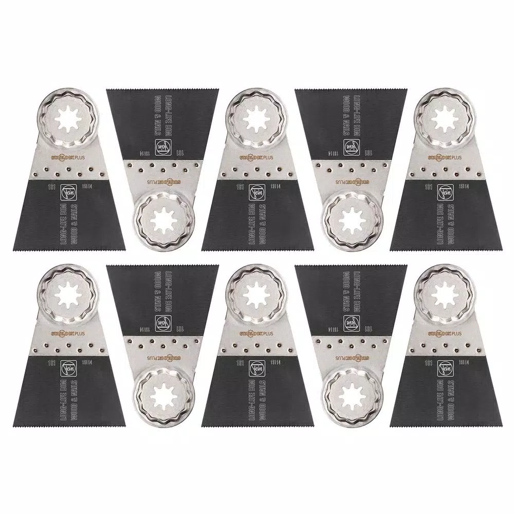 The FEIN Starlock Plus Long-Life E-Cut 161 saw blade has an outstanding service life and excellent work progress. The Long-Life E-Cut 161 saw blade are extremely robust and makes very clean cuts in drywall, plastics, and all wood materials. The Long-life blades will cut nails (up to approx. 4 mm Dia). Even if you don’t own a FEIN oscillating multi-tool, you can affordably upgrade output by choosing a FEIN Starlock blade. The Starlock Plus mount fits all popular multifunction tools with Starlock Plus and StarlockMax mounts, as well as older model FEIN MultiTalent and MultiMasters.