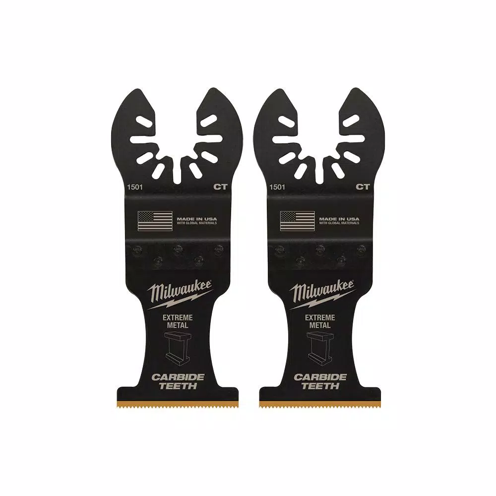 The MILWAUKEE Universal Fit OPEN-LOK 1-3/8 in. Titanium Enhanced Carbide Teeth Blade 2 Pack for Oscillating Multi-Tools is designed for extreme metal cutting in screws, bolts, metal pipe, nails, and more. The 1-3/8 in. Titanium Enhanced Carbide Teeth Metal Blade lasts up to 50X longer than standard bi-metal blades and can be used in a wide range of materials for the longest blade life. This Milwaukee carbide teeth blade is designed with global materials.