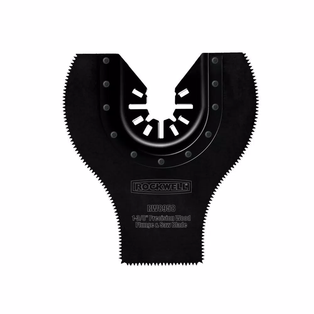 The Rockwell RW8958 1-3/8 in. Standard Wood Plunge and Saw Blade. Use this hybrid blade for precise plunge cutting and sawing. This blade combines the plunging functionality of a typical end cut blade with the efficient sawing shape of a semicircle saw blade. Universal Fit interface fits all oscillating tools.