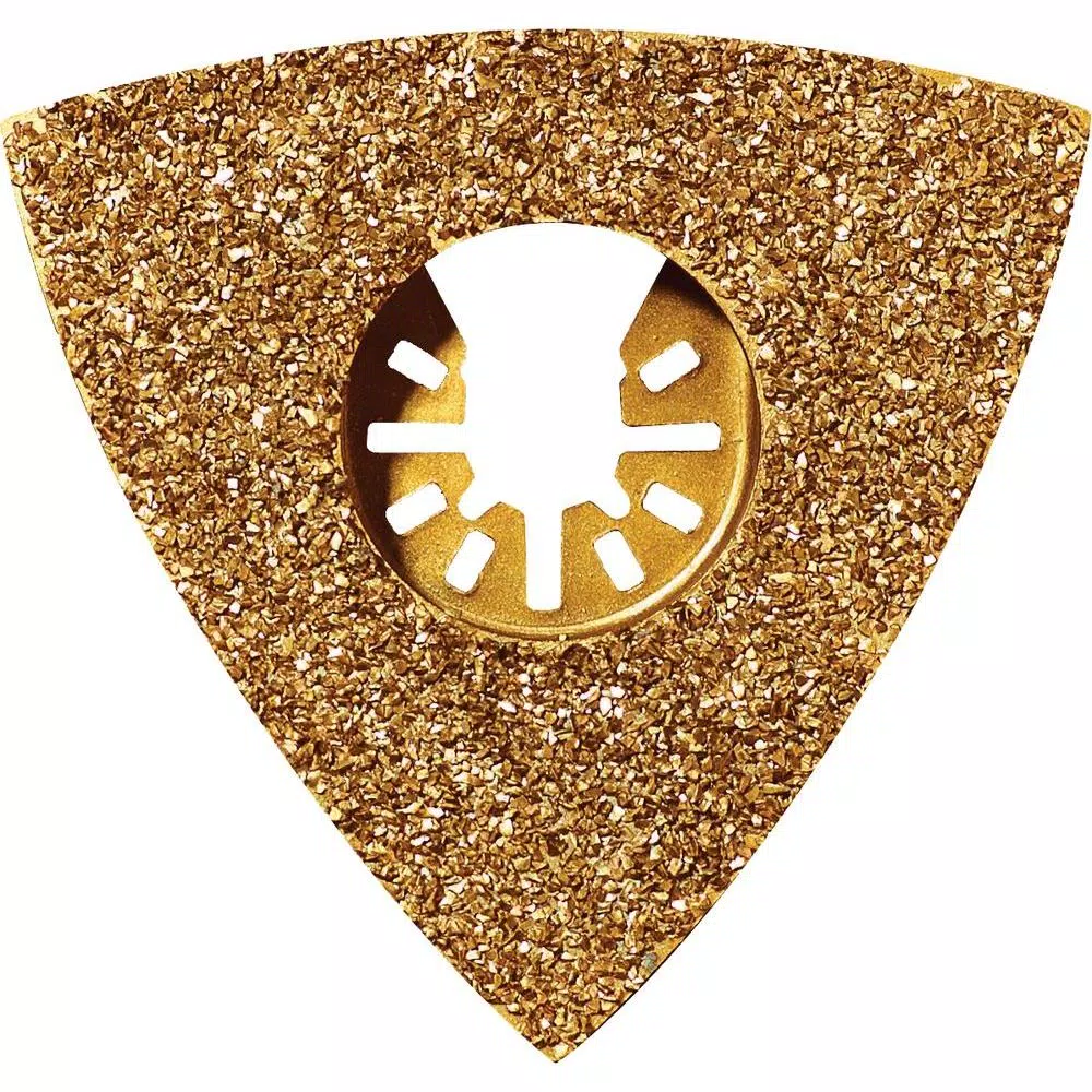 The Rockwell RW8923 Carbide Grit Rasp Blade is great for rasping wood; cutting hardened adhesives and thin set; and etching or rasping masonry. The coarse grinding and rasping makes it aggressive at material removal over larger areas.