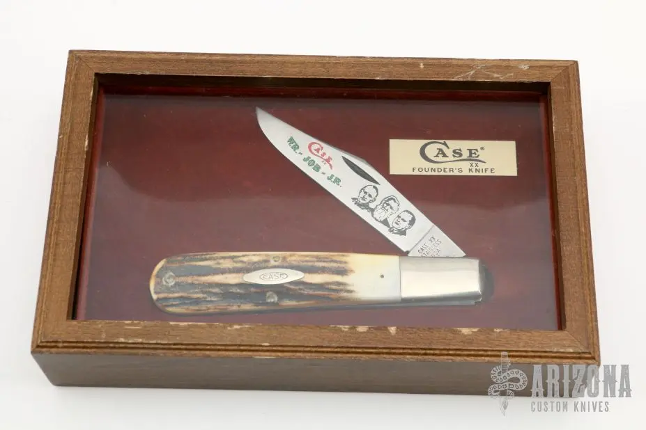 This Barlow by Case features a satin finished blade with nail nick. The handle has nickel silver bolsters, stag covers, brass liners and stainless steel spring. Comes with original display box with COA on the back. Excellent condition.