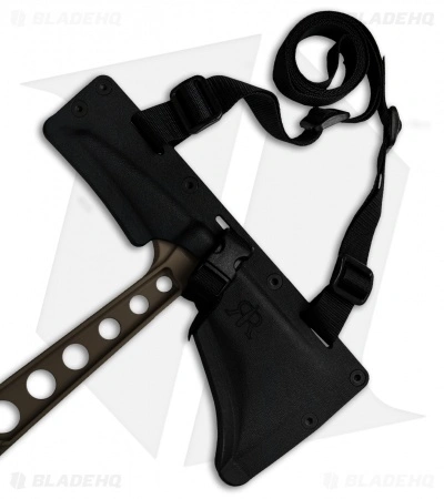 - Kydex sheath offers PALS/MOLLE compatibility with optional shoulder strap and belt buckle configurations.