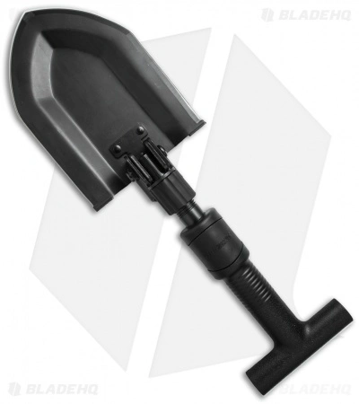 This telescoping shovel from Schrade measures 19″ long when fully extended and folds down to just 10″ for transit and storage. The head is made of 1055 carbon steel and features sharpened edges. It has a polypropylene handle with an aluminum inner tube and the threaded ring that makes folding and locking the shovel quick and easy. Includes a black nylon sheath.