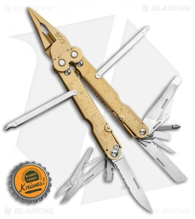 The SOG PowerLock is a one-hand opening multi-tool that is both strong and capable. With the patented gear driven Compound Leverage™ mechanism and a long list of components to tackle your every project, the PowerLock is a crowd favorite. This gold model features scissors.