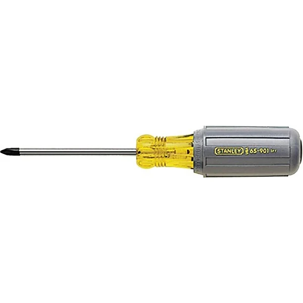 Stanley® 100 Plus® 2-Point screwdriver features a 4″ long round shank of 1/4″ Dia and size 2 Phillips® tip. Screwdriver is 6 5/16″ long and has black oxide tip to resist corrosion and precise fit full size vinyl grip handle for better comfort.