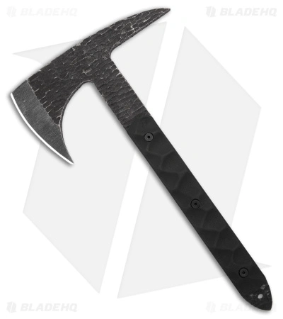 - Black stonewashed, hammer-finished blade made from 1095 steel.