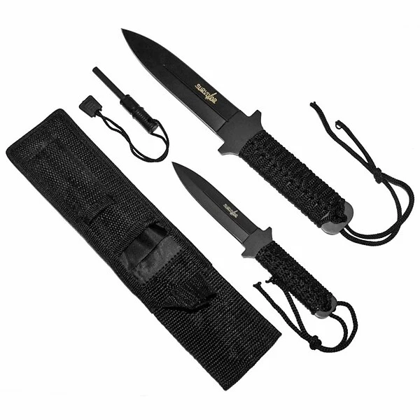 Trademark Whetstone™ Survivor fire starter survival knife set provides carrying case with Velcro strap for convenient use. Knife set includes magnesium alloy fire starter to build a fire very quickly and easily.