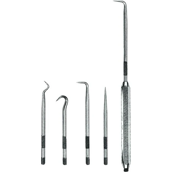 - Includes: Combination pick, hook pick, 90° pick, straight pick