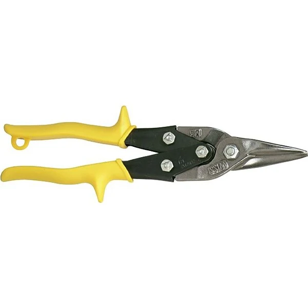 Cooper Hand Tools Wiss® Metalmaster® 9.75″ Snips with yellow color steel handle provides more cutting power by compound lever action. Serrated jaw snips have a cutting capacity of 0.049″ and cuts left from tight curve to straight up to 1.5″ length.